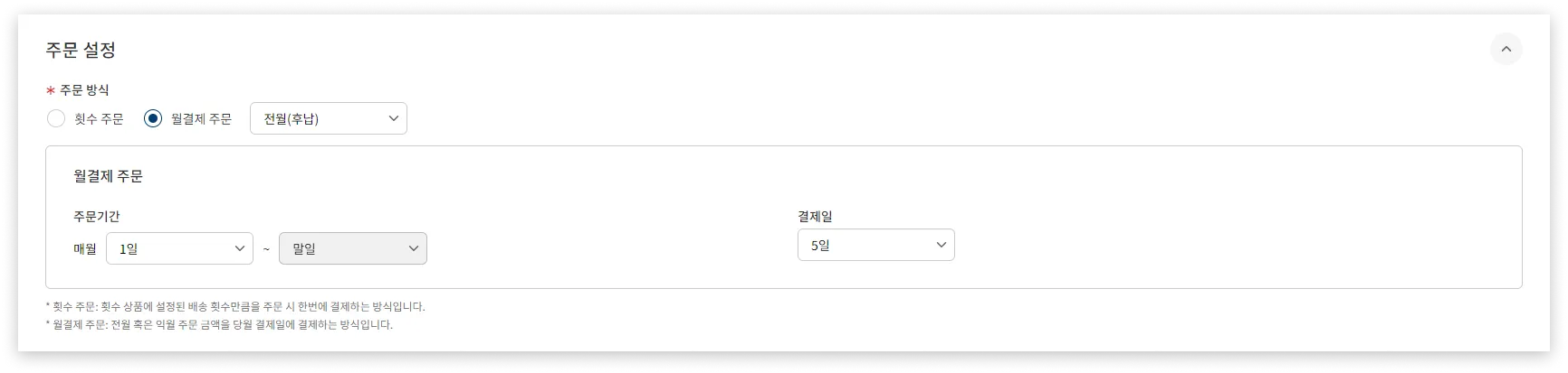 결제방식 설정
