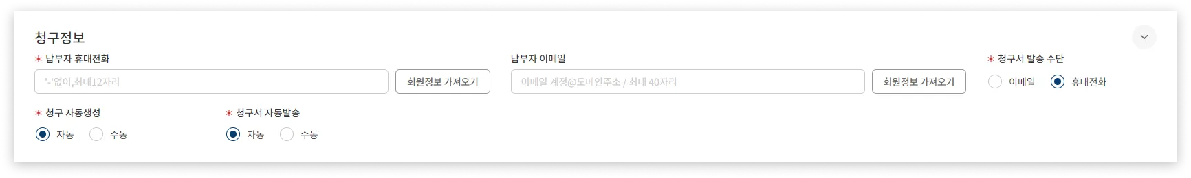 자동: 청구 생성 후, 청구서가 자동으로 발송됩니다. (청구서 발송 시점은 결제수단별로 상이합니다.)