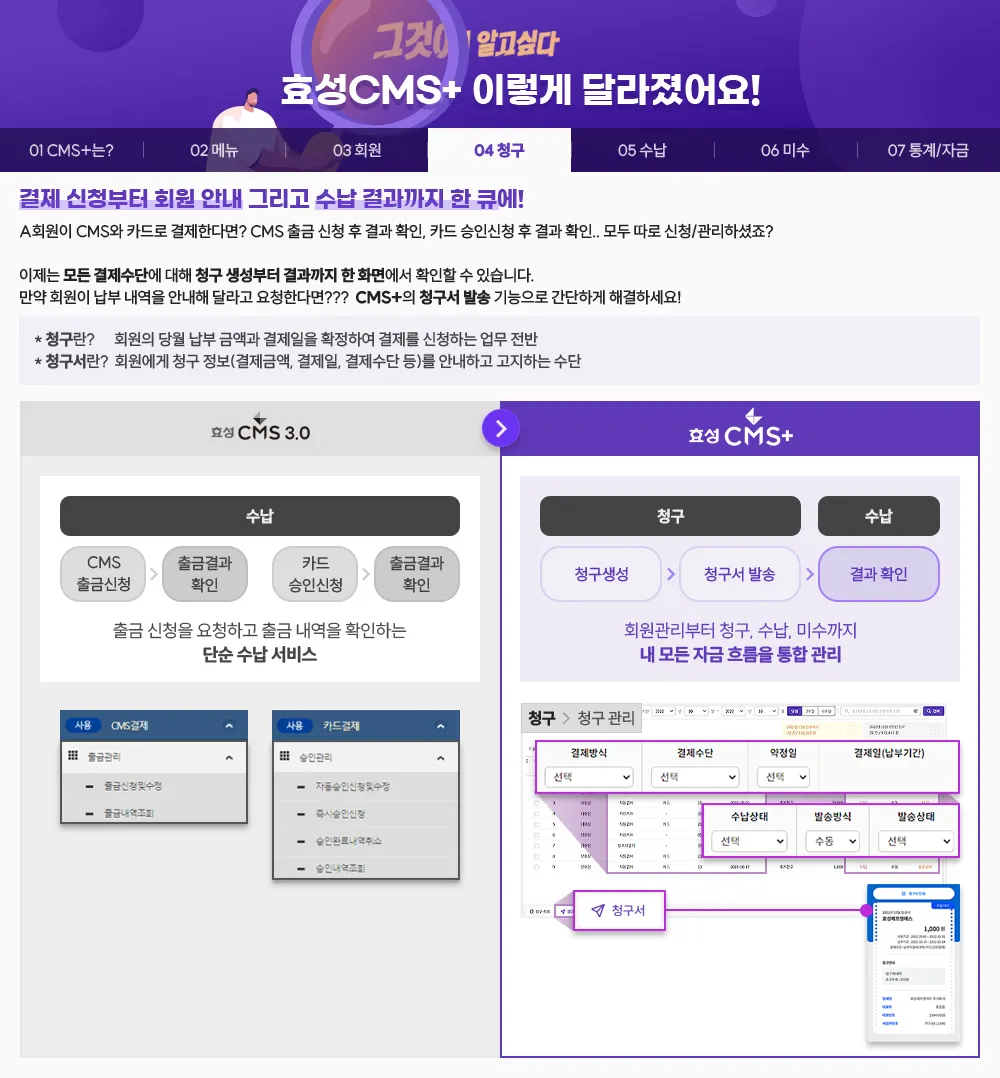 기존 효성CMS에서 효성CMS+가 어떻게 달라졌는지 알아봅시다!
