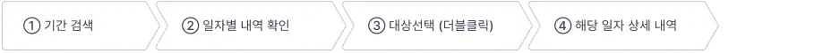 [전체내역조회]를 통해 상단 일별 정산 내역의 회원별 상세 내역을 확인할 수 있습니다.