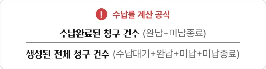 전체 청구 건 대비 (완납+미납종료 청구 건)의 비중입니다.