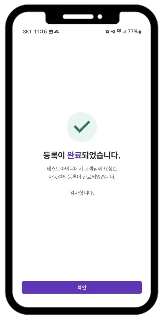 8. 자동결제 등록 완료