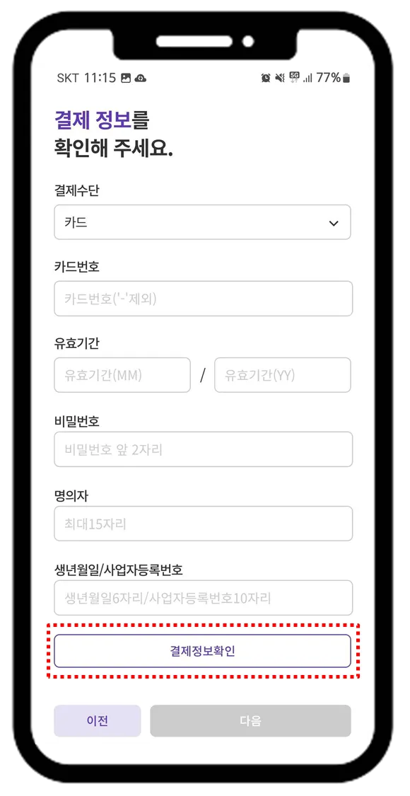 6. 결제정보 입력 및 유효성 체크 (결제정보 확인)