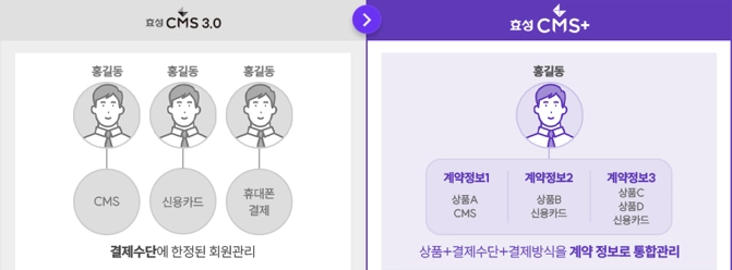 ☞ 이에 따라 한 명에 회원에 대해 결제수단 및 납부금액을 다양하게 청구하려고 할 때 CMS 3.0과 달리 회원 등록이 추가로 필요하지 않습니다!