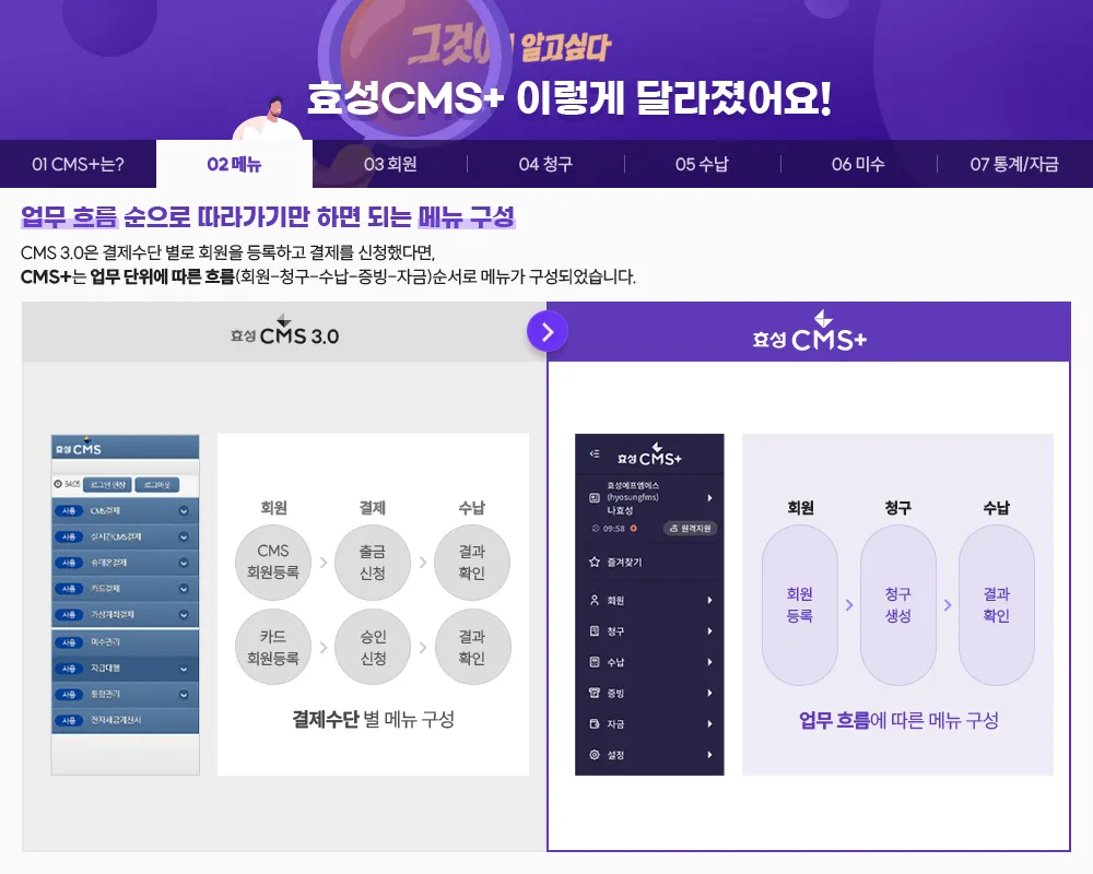 기존 효성CMS에서 효성CMS+가 어떻게 달라졌는지 알아봅시다!