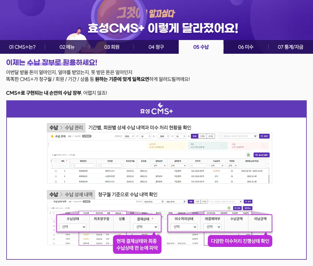 골치 아픈 미수처리, 효성CMS+의 다양한 미수처리 방법을 활용해 보세요.
